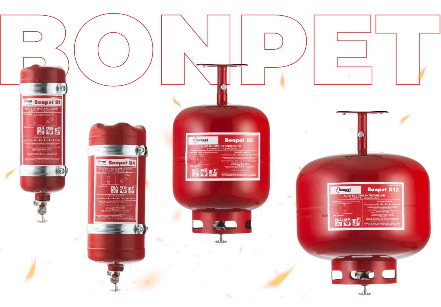 Samoaktivirajući vatrogasni aparat Bonpet za gašenje požara koristi se u zatvorenim prostorima za gašenje početnih požara klase A, B i F. Idealan je za ugradnju u kotlovnicama, radionicama, za zaštitu specifičnih sklopova strojeva te i u ostalim prostorima ugroženima zapaljivim mastima, uljima ili naftom.